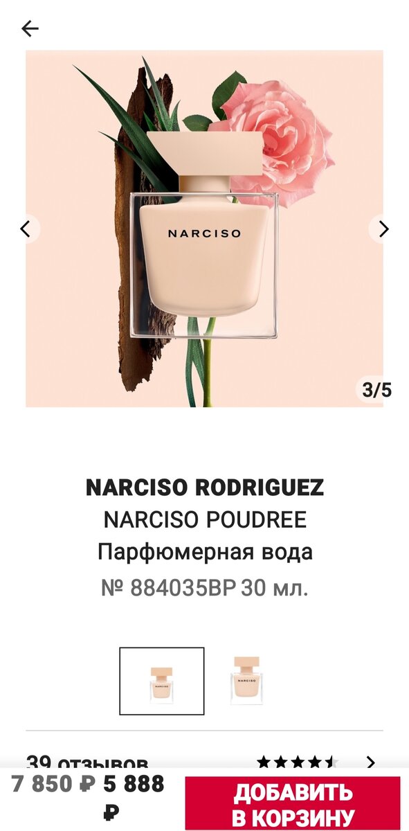Мой один из любимых парфюмов . Narciso Rodriguez . Narciso Poudree Базовые ноты Белый кедр, Ветивер, Кедр Пол Для женщин Средние ноты Пудровые ноты, Мускус Верхние ноты Жасмин, Дамасская роза Год создания 2016 В 2016 году американский бренд Narciso Rodriguez пополнил свою коллекцию ароматов новым цветочным древесно-мускусным творением под названием Narciso Poudree, который поступит в широкую продажу уже этим летом. Narciso Poudree – это новая глава любовной истории, пропитанной страстью. Этот аромат необычайно мягкий, теплый, мощный и пульсирующий. Его невесомая красота прекрасно подчеркивает зрелость и чувственность женщины, обволакивает тонкой вуалью нежности и женственности. Парфюм открывается сладкими цветочно-дымными аккордами болгарской розы и яркими, солнечными, душистыми, медовыми нотами жасмина. Центр композиции украшен, мягкими, бархатными, обволакивающими пудровыми акцентами, создавая великолепный тандем с чувственным, влекущим запахом мускуса. Завершающим штрихом в создании