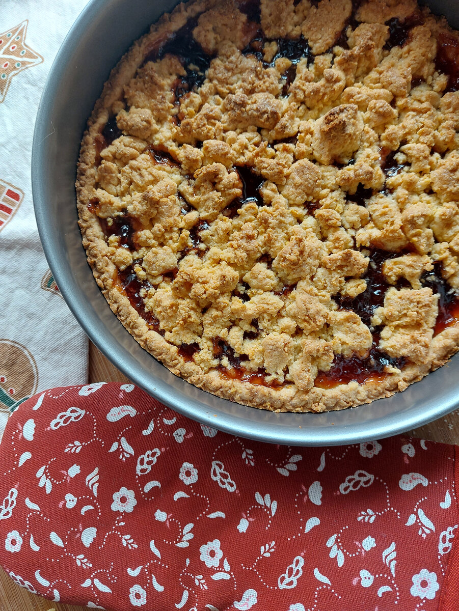 Самый вкусный песочный пирог со сливовым вареньем.