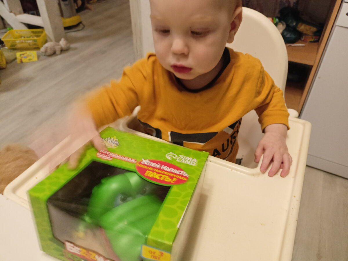 С одной стороны, праздновать день рождения Лёне нет смысла, он ведь ничего не поймет. И даже ради старших детей нет смысла, они уже достаточно взрослые, чтоб не увидеть в этом дискриминацию. Но внезапно, получились домашние посиделки, а все от того, что мы с Андреем решили подарить Лёне крокодила. Конечно, обычно игрушки для малышей обычно никому, кроме малышей, не интересны. Но, внезапно, крокодил очень понравился старшим. Жали зубы, смеялись, потому что коварный зуб, захлопывающий пасть, вечно выпадал Артёму :) Лёня сидел с видом "ничего не понимаю, но очень интересно", и тоже играл. Первая его настолка :) А ребята, насмеявшись с крокодилом, решили, что коллективную игру надо продолжить. Немного пободались, какую настолку выбрать для дальнейшей игры: - Манчкин долго, на шесть человек это затянется до полуночи, - Уно слишком просто, а простая игра сегодня уже была, - в динозавров долго разбираться, она половине присутствующих не знакома. Затеяли диксит. В общем, хороший получился