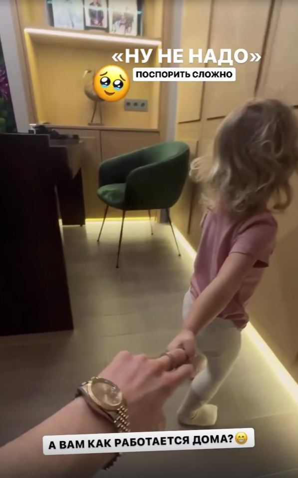 Сын певицы Валерии Арсений Шульгин показал забавный видеоролик с участием его дочери Селин. Видео он опубликовал в своих социальных сетях. Молодой отец поделился фрагментом диалога со своей дочерью, во время которого девочка утверждала, что папа должен провести время с ней, а не заниматься делами. Бизнесмен признался, что не может отказать в просьбе своей дочери. При этом Арсений отметил, что ему нелегко совмещать работу и воспитание ребенка. Кроме того, сын Валерии признался, что он является трудоголиком и не умеет переключаться между задачами: из рабочего состояния его выбивают даже выходные дни. Однако Арсений Шульгин признался, что со временем учится находить баланс между работой и отдыхом с семьей. По его словам, без отдыха он хуже генерирует идеи.