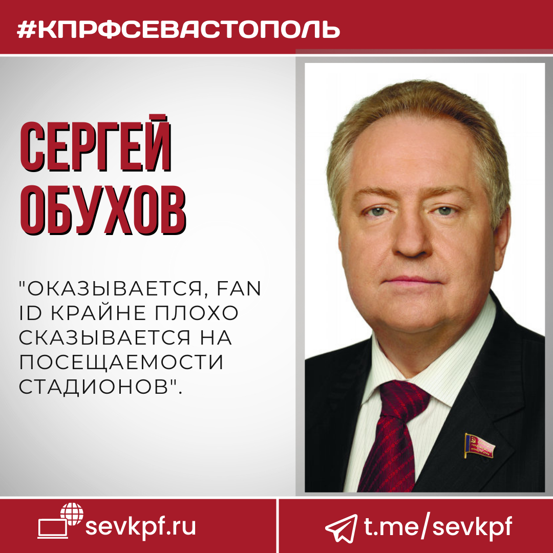 Депутаты-единороссы внезапно "прозрели" и "обнаружили", что введение Fan ID крайне плохо сказывается на посещаемости стадионов Депутат Госдумы от КПРФ Сергей Обухов в своих соцсетях сообщил о том, что на негативные последствия введения Fan ID внезапно обратили внимание депутаты-единороссы, ранее рьяно отстаивающие прямо противоположную точку зрения! "Делятся в публичном пространстве своими "невероятными" открытиями - оказывается, Fan ID крайне плохо сказывается на посещаемости стадионов. Депутат Виталий Милонов уже грозится подготовить инициативу об отмене Fan ID и направить её в Правительство. Вот так поворот! Кто бы мог подумать, что эта идея окажется такой неудачной... А я скажу, кто: ваш покорный слуга депутат Обухов, да и вся фракция КПРФ в Госдуме! Вот кто об этом твердил с самого момента появления идеи о введении Fan ID на российских стадионах", - отмечает коммунист. Стоит отметить, что представители КПРФ не только говорили, но и внесли на рассмотрение законопроект об отмене