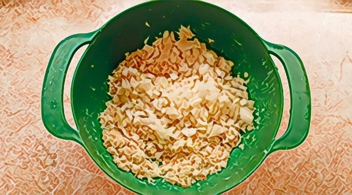 Котлеты, точнее само название нам подарили французы и изначально это был стейк на кости, чаще из рёберной части. Именно в таком виде оно пришло когда-то в Россию. Позже, хозяин одного постоялого двора в Торжке, некий Евдоким Пожарский начал мелко рубить мясо ножом для этого блюда. Так и появились знаменитые пожарские котлеты. Поскольку рубилось мясо вручную, блюдо было дорогим и в основном для господ. До нынешнего вида котлеты довели только с появлением мясорубки. Вот, сколько метаморфоз претерпел французский кусок мяса, чтобы стать привычным и традиционным для каждой семьи. У меня есть много рецептов котлет и часто в комментариях пишут, что я готовлю их как-то не так. Особенно, мне нравится, когда одни настаивают, что хлеб должен быть, а другие, что его не должно быть. А вы как считаете? Для крестьянских котлет я раскрошила 2 куска серого хлеба без корочки, толщиной 1,5см и залила его 100мл кипятка. После остывания хлеб размять. Добавила 800гр фарша "Домашний", пополам 400гр свинины
