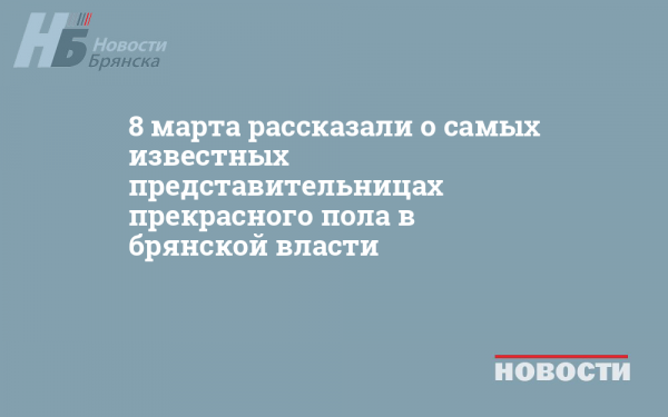 8 марта рассказали о самых известных представительницах прекрасного пола в брянской власти