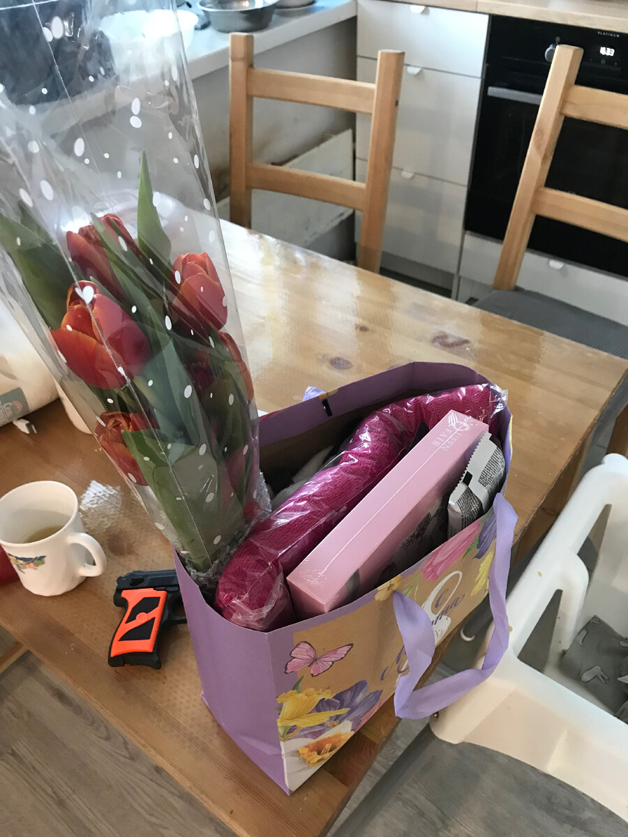 Для начала поздравляю Вас с праздником, женщины) Мы вообще никогда не отмечали праздники 23 февраля и 8 марта, но потом вышли на работу и как-то привыкли 😁 Ведь это всегда выходной, поздравления и подарки, поэтому решили радовать друг друга мелочами и приятными словами, спасибо профсоюз и работодатель 😅 Сейчас расскажу, что подарили мне в этом году. На работе два подарка: от профсоюза и от мужского коллектива отдела. Всё передал муж, очень удобно быть коллегами😅 Вот так выглядит весь подарок: Профсоюз в этом году угадал с подарками (в моём случае). Первая часть - банный набор, классное полотенце-парео на резинке и шапка. А в баню мы ездим почти каждые выходные, поэтому подарком точно буду пользоваться. Вторая часть - для ухода за лицом. Тканевая маска и набор для массажа лица. Я регулярно делаю массаж лица, особенно часто лимфодренажный. Давно посматривала на скребок Гуаша и роллер для лица, а тут он сам в руки пришёл. Конечно, камень там не натуральный, но на пробу и первое время