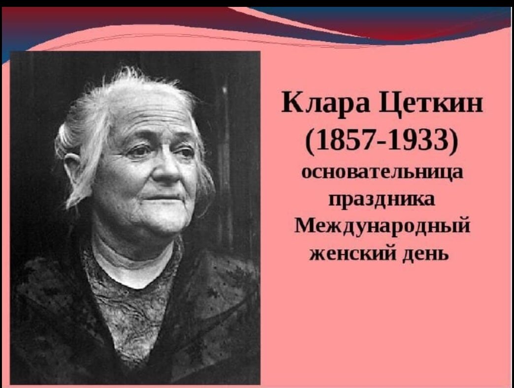 Доброго времени суток дорогие читатели. Поздравляю всех женщин с днем 8 марта. А вот и история этого дня. Одна из самых известных деятельниц немецкого и международного социалистического и женского движения Клара Цеткин (Clara Zetkin) вошла в историю XX века не только как активная коммунистка, но и как женщина-реформатор, сыгравшая немаловажную роль в становлении европейского движения за права женщин. В советское время главной заслугой Цеткин считалось учреждение по ее предложению Международного женского дня. Клара Цеткин, в девичестве Айснер, родилась в 1857 году в небольшом саксонском городке Видерау в семье сельского учителя. Уже в юном возрасте Клара выделялась среди сверстников любознательностью и цепкой памятью: в 9 лет девочка прочла всего Гете и Шиллера и с удовольствием декламировала их стихи, а в 12 - на память цитировала отрывки из "Истории французской революции" историка Томаса Карлейля. Еще будучи студенткой Лейпцигской педагогической гимназии, престижного учебного завед