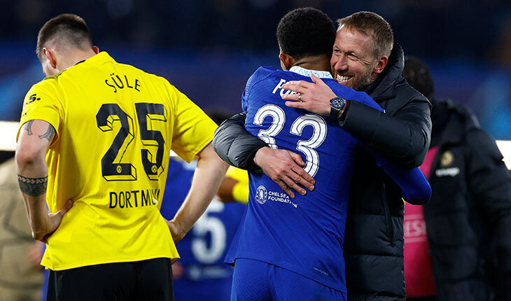 2:0 – этого хватило. «Челси» уложил «Дортмунд» в 1/8 финала ЛЧ: домашние 2:0 подправили поражение 0:1 в Германии. Старт матча вышел ярким: «Дортмунд» много контролировал мяч, а «Челси» искал моменты на контратаках. Немцы ограничились острым ударом Ройса со штрафного, а команда Поттера давила без остановки: на 27-й минуте могли открывать счет, но Кай Хавертц зарядил в штангу. На 43-й минуте давление «Челси» все-таки привело к голу: сначала Стерлинг промахнулся по мячу, но потом исправился и зарядил сквозь кипера Майера. На второй тайм «Челси» вышел таким же заряженным – и уже на 53-й минуте забил второй: пенальти Хавертца чуть не превратилось в серию, но в итоге Кай справился. После этого «Челси» снова отдал гостям инициативу и подсел. «Боруссия» упустила момент Беллингема, а потом не смогла придумать что-то реально опасное. Хозяева додержали преимущество и вышли в четвертьфинал Лиги чемпионов. «Челси» прошел заслуженно – вот подтверждения Признаки выздоровления? • Доминацию «Челси» в п