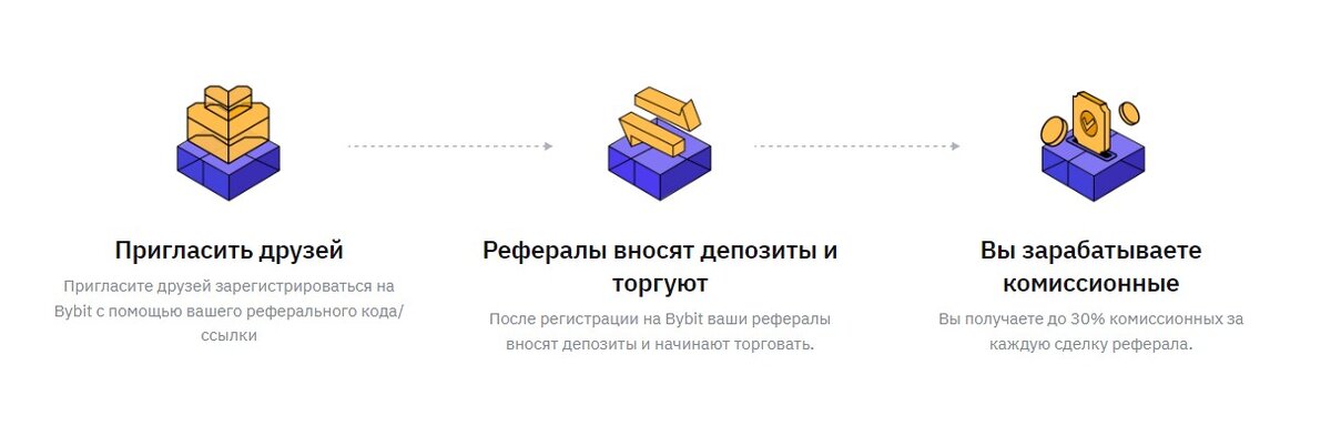 1. Пригласить друзей Пригласите друзей зарегистрироваться на Bybit с помощью вашего реферального кода/ссылки 2. Рефералы в