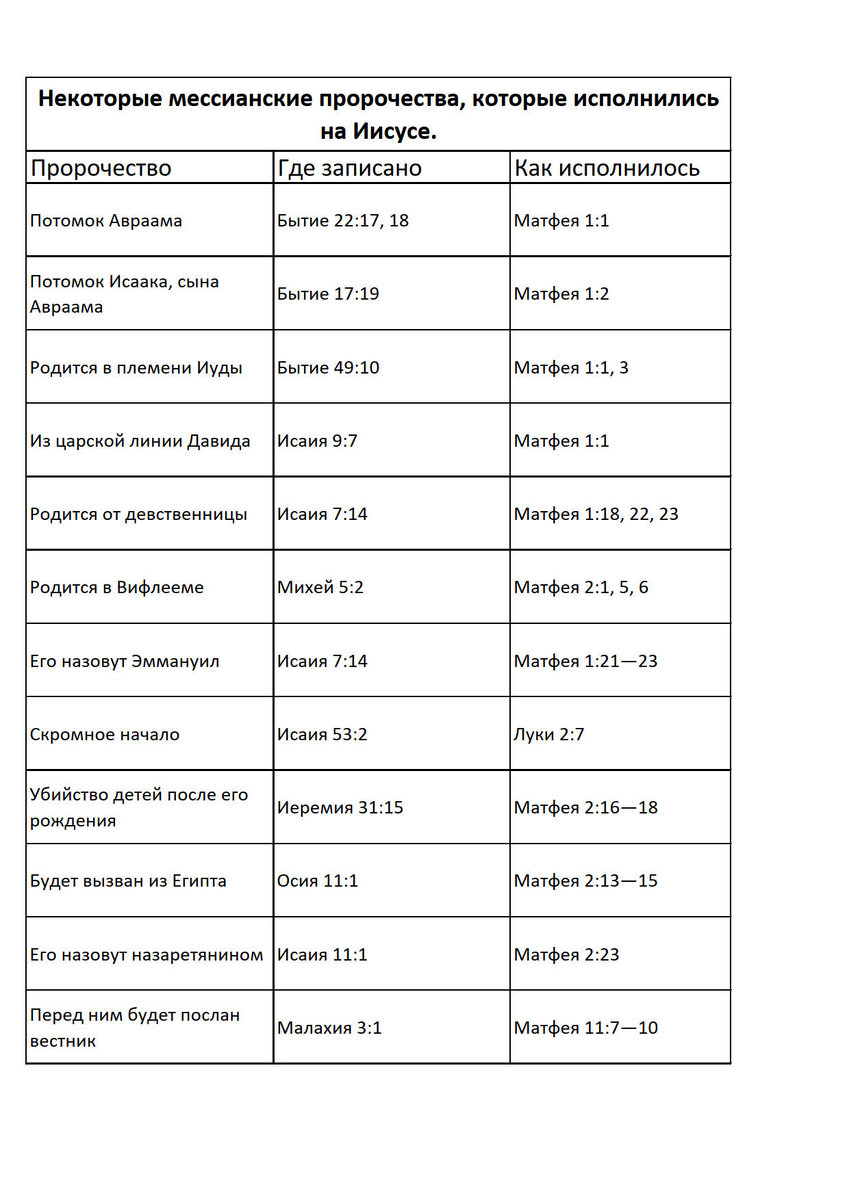 Некоторые мессианские пророчества, которые исполнились на Иисусе.