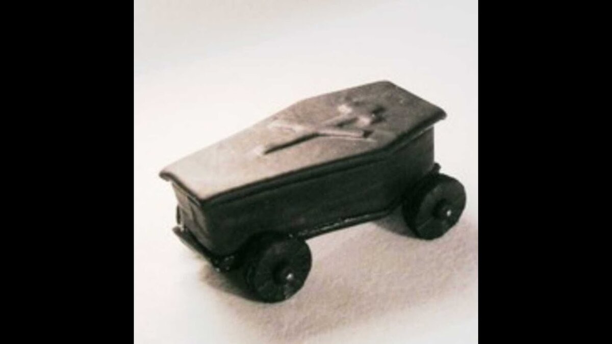 Успокоил старика находчивый продавец и буквально за несколько минут, прикрутил к нижней плоскости гроба колеса от старой детской коляски.