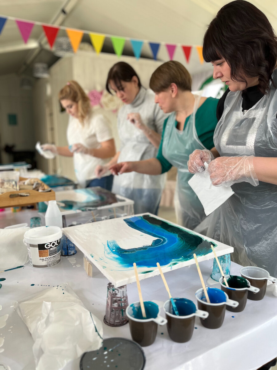 Ванна, шампусик, массаж, нет я про что-то новенькое. Почему я назвала этот проект Студия Релакса "не Художник"? Здесь каждое слово имеет свой смысл. Студия - слово привычное в плане творчества и красоты, фотостудия, студия красоты, ногтевая студия, студия загара и т. д. Релакс - термин, говорящий о том, что здесь будет приятно, легко, свободно. Здесь другой мир, другая атмосфера. Тут просто выпадаешь из жизни на несколько часов и впадаешь в полный восторг. Не - частица, которую наш мозг пропускает, но здесь она намеренно с маленькой буквы и намеренно есть. Она говорит о том, что здесь не нужно опыта, художественных знаний, навыков рисования или ещё каких-то. В этой технике всё максимально просто и доступно. Художник - это творец, не нужно состоять в союзе писателей, чтобы вдохновлять своим творчеством других людей. Чтобы кайфовать от процесса. Ведь результат не факт, что будет тем, что было залито. Это всегда сюрприз, интрига, загадка. И вишенка на торте - в этой технике можн