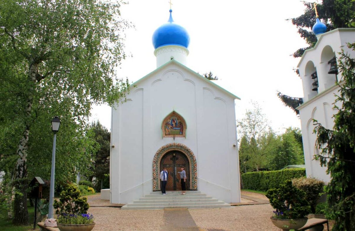 Церковь была заложена в апреле 1938 года, а уже 14 октября 1939-го ее освятили. Она находится в юрисдикции Архиепископии западноевропейских приходов русской традиции Русской православной церкви. Храм был построен по проекту архитектора Альберта Александровича Бенуа в стиле новгородских белокаменных новгородских церквей XV века. Звонница выполнена в стиле псковской архитектурной школы. Вместе с женой, Маргаритой Александровной, Альберт Александрович расписал фресками внутренние своды церкви и крипту, где покоятся останки иерархов Архиепископии Русской православной церкви за рубежом. Бенуа, умерший в 1960 году, и его супруга, скончавшаяся через четырнадцать лет, также были похоронены в крипте. Сейчас церковь нуждается в серьезной реставрации.