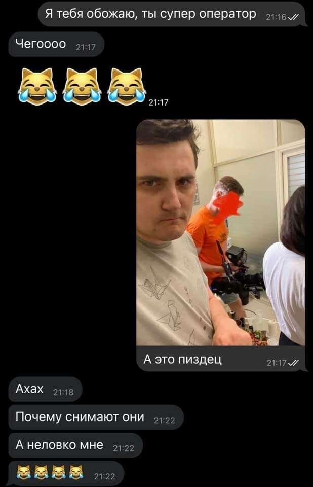 Мы со Славяном стояли в метре друг от друга и переписывались. Я написала ему, что он невероятно крутой фотограф, в отличие от парня в оранжевой рубашке.