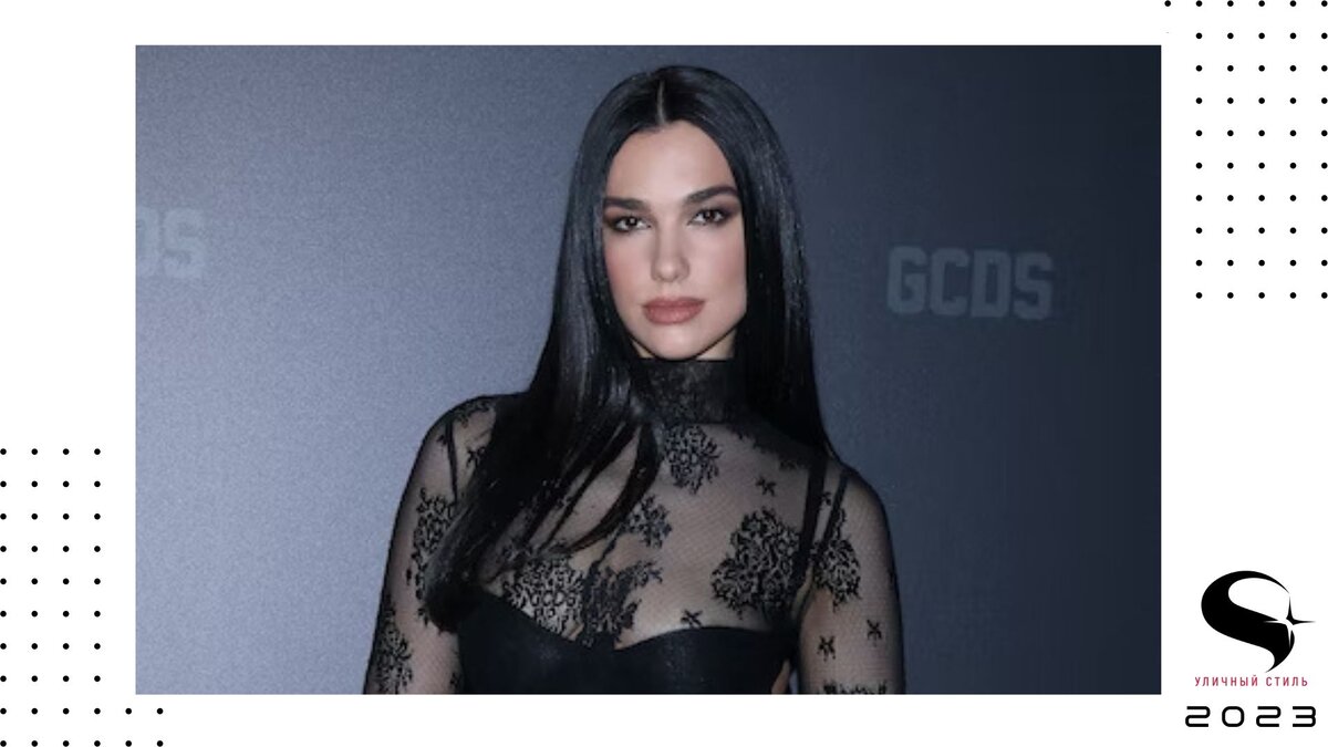 Дуа Липа надела прозрачное кружевное платье на Неделю моды в Милане 2023