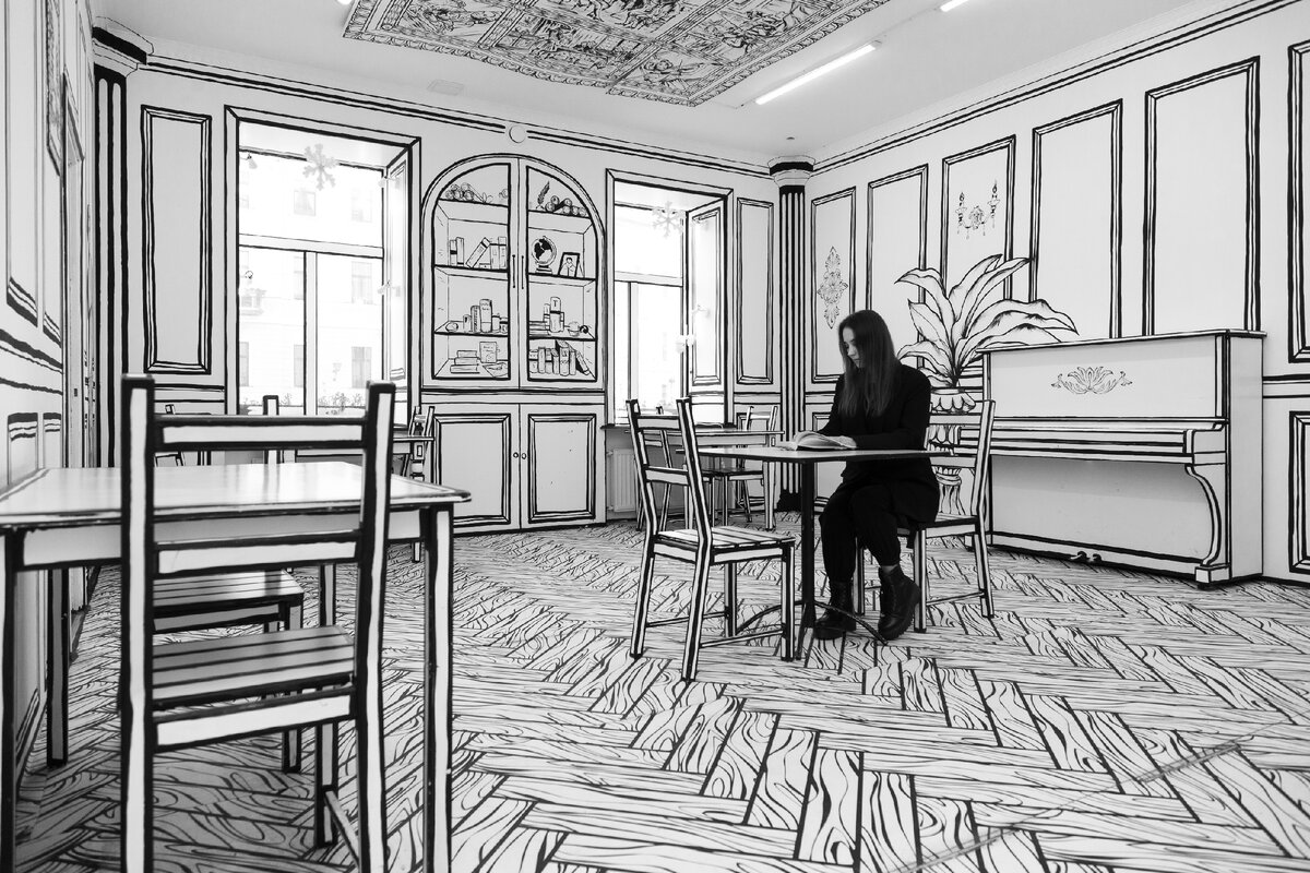 Сегодня расскажу об одной из самых оригинальных для съемок кофеен - ЧБ кафе. Это сеть 2D пространств по всей России. В Петербурге открыто 2 заведения.