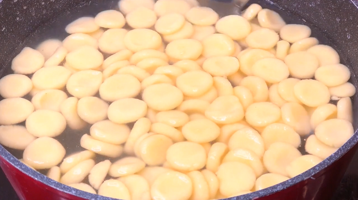 Не так давно открыла для себя новый рецепт из двух ингредиентов, который с удовольствием полюбили и я и вся моя семья! Впервые этот рецепт я нашла на форуме, но решила разнообразить его, и получился очень вкусный ужин, который я готовлю по сей день! Когда я начинала готовить по этому рецепту, то подключились даже дети. Им очень понравился процесс приготовления и они начали готовить со мной. Когда муж попробовал этот вкусный ужин, то он даже не поверил в то что дети тоже приложили к этому руку! Теперь, у нас с детьми, это коронный рецепт и они с удовольствием помогают! Как готовить: Берём 4 картофелины, нарезаем брусочками или кубиками (как вам удобнее) Выкладываем всё в кастрюлю и заливаем водой, чтобы картофель свободно плавал. Отправляем вариться на 20-30 минут, на среднем огне до очень мягкого состояния Выкладываем наш картофель в тарелку и добавляем 1 чайную ложку соли. Начинаем разминать его до состояния пюре Засыпаем муку, примерно 100 гр. и продолжаем хорошо перемешивать до одн