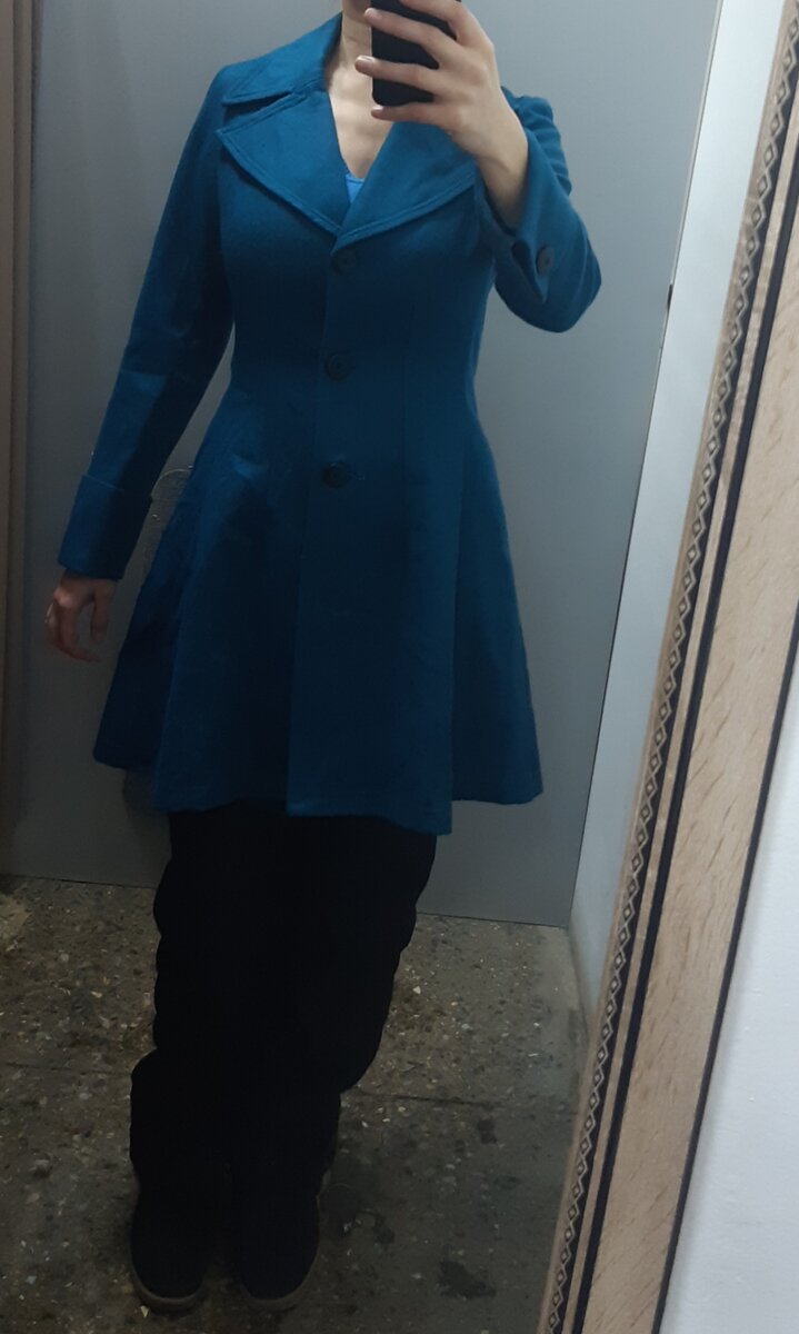 Попалось мне шикарное пальто для пирата. Обалденный состав- 100% шерсть, и судя по пришитой костяной фигурке - из ламы. Бесподобный цвет, яркий, насыщенный, но не кричащий. И дико устаревший фасон: широчайшие лацканы, огромные обшлага рукавов - словно пальто сбежало со съемок исторического фильма. Такое сейчас не носят, это перебор, подумала я. И в этом пальто я буду выглядеть как капитан пиратского судна. Пальто оказалось родом из Эквадора. И на сайте производителя продаются ровно такие же пальто, такого же пиратского фасона, только цвета не такие удачные. Это современное пальто, его сейчас шьют и сейчас продают где-то за 12000р. на наши деньги. А это стоило 1200р. Когда я за ним вернулась, конечно его уже не было. Какой у него красивый цвет!