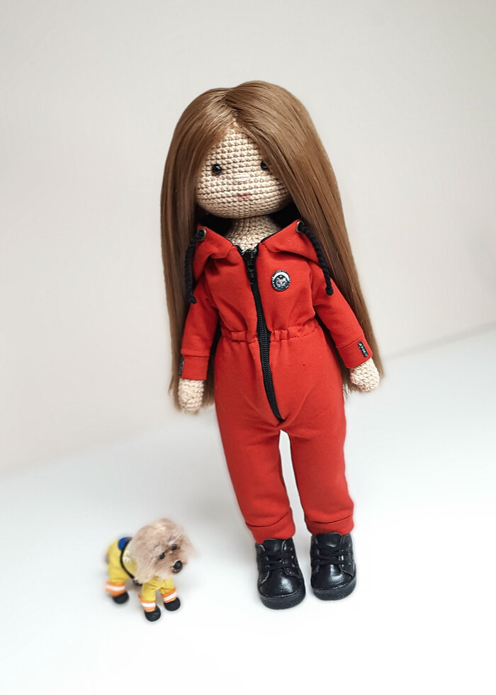 Эта куколка выполнена под заказ, по образу очаровательной девушки! И куда же без любимого питомца) Мордочка у собачки связана из ангоры, начесана, затем в ход пошла шерсть для валяния. Носик из полимерной глины и в заключении выполнена легкая тонировка. Тело каркасное, голова не поворотная. Комбинезон сшит вручную. Далее на фото можно рассмотреть детали в сравнении. Все детали выполнены вручную. Материалы: акриловые краски, полмерная глина. Куколка уже дома) от создания этого заказа я получила невероятное удовольствие!!! Спасибо❤ Рост 33 см. Пост автора MazhuraToys. Комментарии к посту на сайте Пикабу.