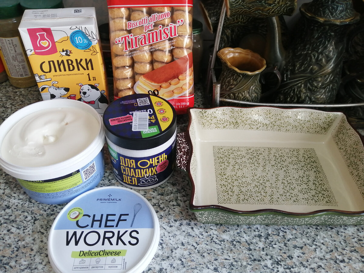 Приветствую, мои дорогие! Сегодня у меня для вас мой рецепт тирамису. Кто сказал, что худеть это грустно и голодно? Можно немного изменить своё питание, поменять некоторые ингредиенты и привычки и стройнеть вкусно, плавно, без вреда для здоровья. Мы, худеющие, тоже хотим себя радовать вкусняшками. Придумался тут мне десерт а 'ля тирамису. Вместо маскарпоне я взяла творожный крем-сыр, с маскарпоне будет чуть калорийнее. Вместо 33 % сливок взяла 10 %, вместо сахара заменитель и вуаля, вместо 300 кк на 100 гр всего лишь 172! Завариваем кофе, мне понадобилось 530 гр, пусть остынет. Смешиваем крем-сыр, сливки, подсластитель миксером в однородную массу. Окунаем савоярди в холодный кофе на секундочку, укладываем в форму. Аккуратно выкладываем половину крема. Делаем ещё один слой печенья и крема. Сверху присыпаем какао-порошком, убираем в холодильник. Мой сынуля выдержал 1 час. 😁😁 Сказал Шикарно! Есть у меня и ещё один вариант тирамису. В моей подборке с рецептами много вкусно