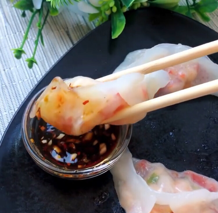🔹"Дим - Сам" - Китайские пельмени🔹 Для этих пельменей используют самую разную начинку, мясную, овощную, морепродукты и даже фркутовую. Я предлагаю попробовать приготовить с креветкой и курицей Нам потребуется: Тесто: 🟢 Картофельный крахмал 50 гр. 🟢 Кукурузный крахмал 50 гр. 🟢 Кипяток 80 мл. 🟢 Щепотка соли 🟢 Подсолнечное малос 1 ч.л. Начинка с креветками: 🟢 Креветки 🟢 Помидор 🟢 Лук зелёный 🟢 Чеснок 🟢 Соль/Перец Начинка с курицей: 🟢 Куриное бедро 🟢 Болгарский перец 🟢 Чеснок 🟢 Зеленый лук 🟢 Соль/Перец Соус: 🟢 Соевый соус 🟢 Перец Чили 🟢 Чеснок 🟢 Масло кунжутное (или оливковое) Приготовление: Сначало приготовим начинку. Для начинки из креветок. Креветки необходимо разморозить, очистить от панциря и нарезать на мелкие кусочки. Помидоры разрезаем, удаляем сердцевину (семечки) и нарезаем на мелкие кубики. Лук и чеснок так же мелко крошим. Все смешиваем, добавляем соль, перец - по вкусу, добавляем одну чайную ложку крахмала чтобы начинка связалась. Для начинки из курицы, в