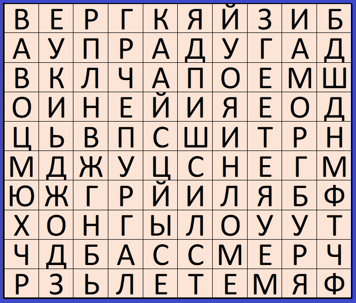 И снова здравствуйте! В таблице спрятаны названия 10 атмосферных явлений. Они расположены по прямой и могут быть написаны слева-направо, справа-налево, сверху-вниз или снизу-вверх. Найдите их. Если понравилось задание, то поставь палец вверх и подпишись на канал! Всем хорошего настроения!