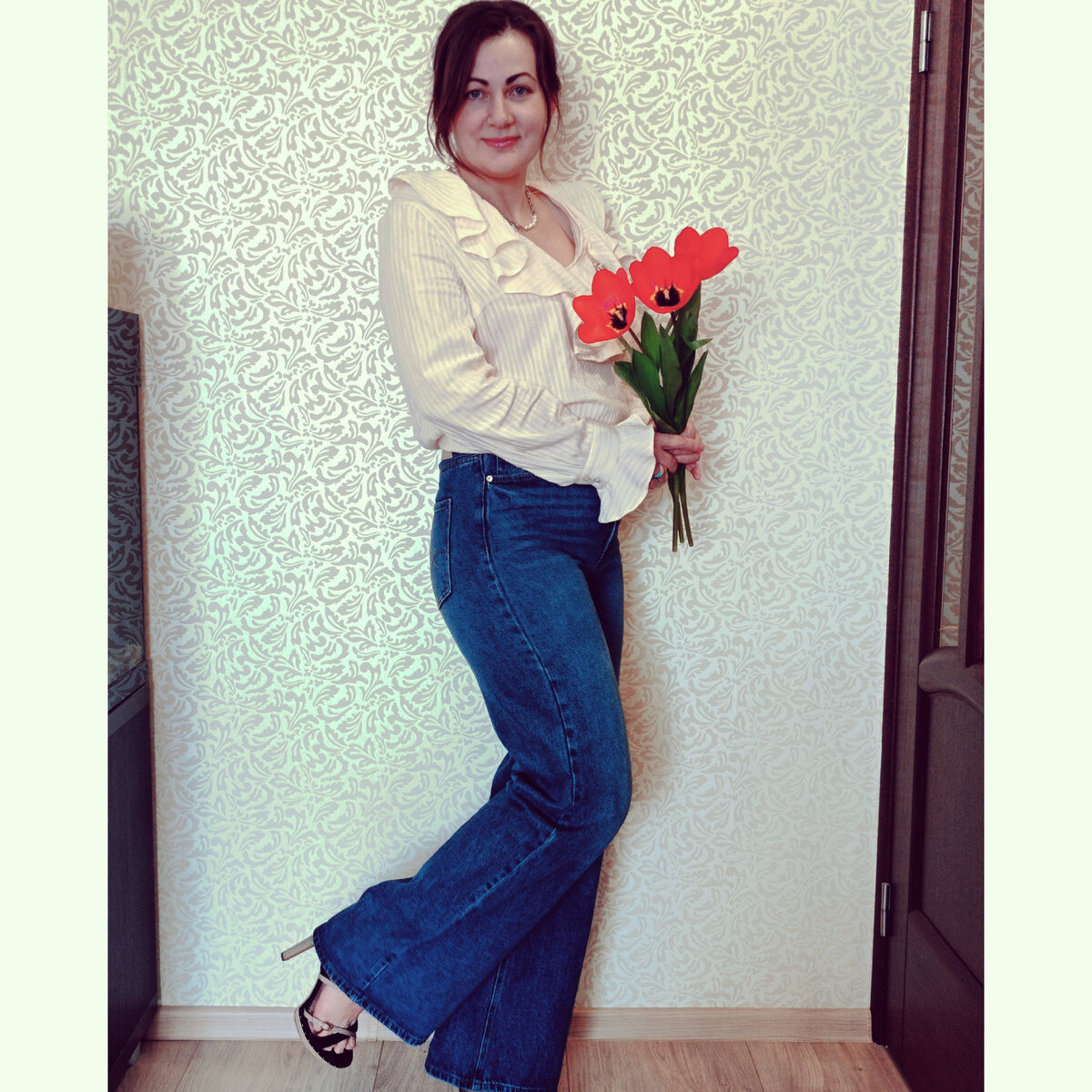 Увидела эту блузку у швейного блогера и решила,что мне срочно надо. Сшила,но одеть всё не было повода,нарядная слишком ! Оказалось , показалось ! Просто надо было купить новые джинсы ,которые хорошо с ней сочетаются, теперь часто буду её носить 💞 #vikisews_берта#сшилаиношу#vikisews