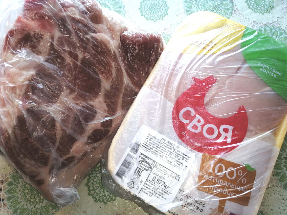 Здравствуйте, дорогие мои! Немного грустно сегодня, так как прошли все праздники, остаются нам только привычные будни, теперь до Пасхи. Весна нам вчера подарка не сделала, в гости с утра ненадолго заглянула, а с обеда повалил снег хлопьями, да еще с ветром. Красиво, но холодно. Развлеку вас сегодня немного нашей предпраздничной закупкой. Мне нравится цены сравнивать, да и посмотреть, кто что покупает, вот и свою лепту иногда вношу). Живем мы в Тульской области По магазинам на сей раз не разбила кучки продуктов, ну так напишу. Всего мы были в четырех сетевых - "Магнит. Моя цена", "Магнит. Экстра", "Победа" и "Светофор". Первые два вроде как "Магнит", товары одинаковые, а цены порой сильно отличаются, ну да по тексту расскажу. Первое, что нам было нужно - что-то из мяса. С "нашим любимым" местным мясным магазином что-то случилось (хозяин сменился, наверное) и теперь мясо у них выглядит крайне неаппетитно, если можно так о сыром мяса сказать. Заветренное, разделывать стали хуже, местами