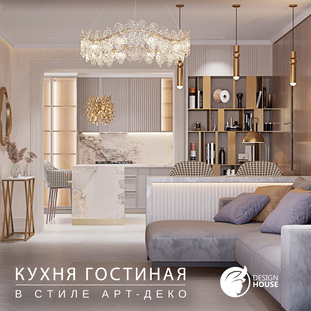 Кухня-гостиная в небольшом частном доме🏠 в стиле арт-деко.