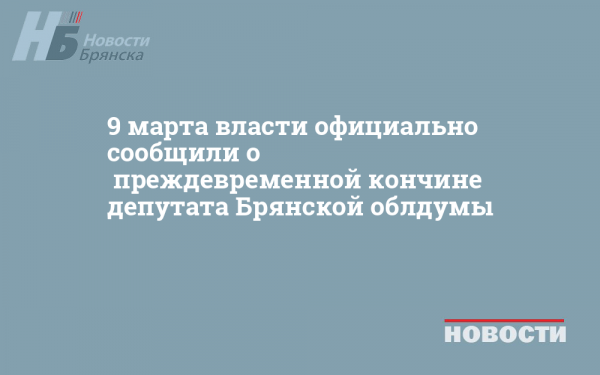 9 марта власти официально сообщили о "преждевременной кончине" депутата Брянской облдумы