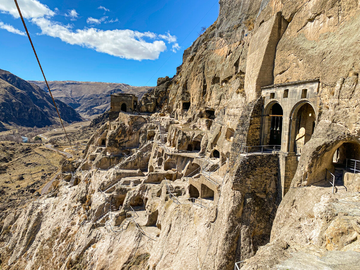 Пещерный город Вардзия выдолблен в скале. Начало строительства относят к 12 веку. Представлял из себя неприступное убежище при набегах. Сейчас это потрясающий памятник архитектуры. Билет стоит 15 gel + 2 gel за подъем на авто ( можно не платить и идти пешком). Большая часть пещер представляет из себя однотипные помещения, поэтому мы не стали осматривать каждое досконально, останавливаясь лишь на более менее интересных. Доступ к некоторой части комплекса был перекрыт ограждениями, поэтому на обзор основных помещений ушло где-то 1,5 часа. Ехать сюда однозначно стоит за впечатлениями и созерцанием окружающих красот.