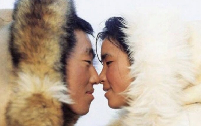 Но и народы тёплой Полинезии приветствуют похоже; например, у новозеландских маори [1] и гавайцев - приветствия "хонги" и "хони". Маори объясняют: хонги показывает - насколько "свой" стоит перед тобой, и чего хочет. Они не просто прижимаются носами, а "разделяют дыхание жизни" - делают 1-3 резких выдоха\вдоха..