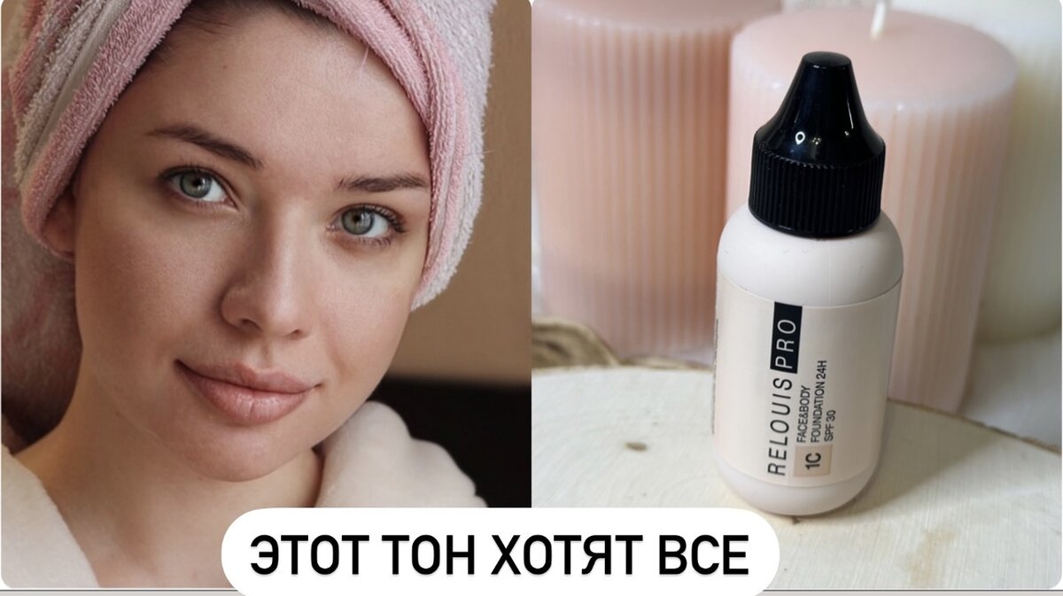 Всем привет, меня зовут Екатерина и я счастлива видеть Вас на своей Дзен страничке. Буду рада, если ты на меня подпишешься, потому что только у меня самые полезные БЬЮТИ ВИДЕО И СТАТЬИ. Кстати, на Ютуб я так же веду бьюти Блог: https://youtube.com/@KATABRAM-BEAUTYBLOG. Сегодня речь пойдет о новинке от Белорусского производителя RELOUIS Face&Body Foundation 24H SPF30. Я, как любитель и ценитель, белорусской косметики просто не смогла пройти мимо. На Валдберрис по скидке заказала продукт за 300 рублей всего. На следующий день цена поднялась до 450 рублей. У меня кожа проблемная. Очень проблемная. Сейчас я добавлю фото без всяких фотошопов: Тут мое лицо после скраба. Вы отчетливо можете наблюдать полный букет счастья от глубоких и расширенных пор на лбу, щеках, носу и подбородке. Купероз на крыльях носа. Пигментацию, возрастные изменения, тк я уже давно не подросток. Теперь о тоне, который даже тоном назвать сложно. Это именно легкий флюид: У меня один из самых светлых оттенков. Мне по
