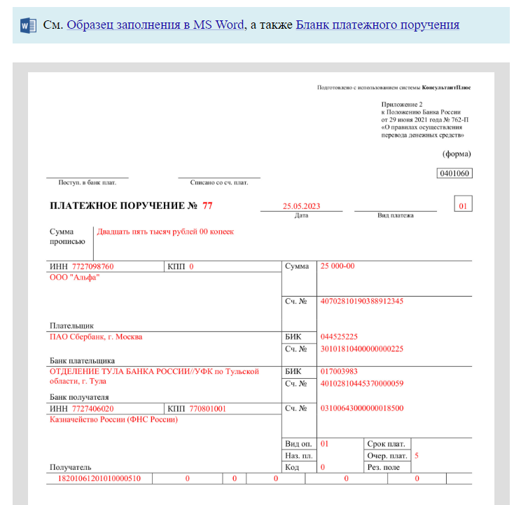 Заполнить платежки с учетом всех актуальных требований вам помогут образцы от «КонсультантПлюс», посмотреть которые можно бесплатно, оформив пробный доступ: