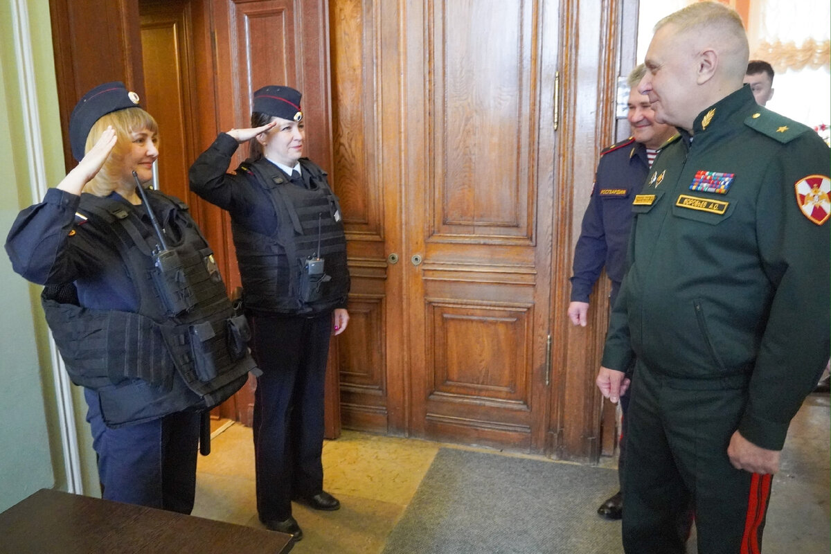 Женщин-росгвардейцев, несущих службу по обеспечению безопасности Эрмитажа даже в свой праздник, сегодня лично поздравляли командующий Северо-Западным округом Росгвардии генерал-майор Алексей Воробьев и начальник Главного управления Росгвардии по Санкт-Петербургу и Ленинградской области генерал-майор полиции Андрей Тарасов.