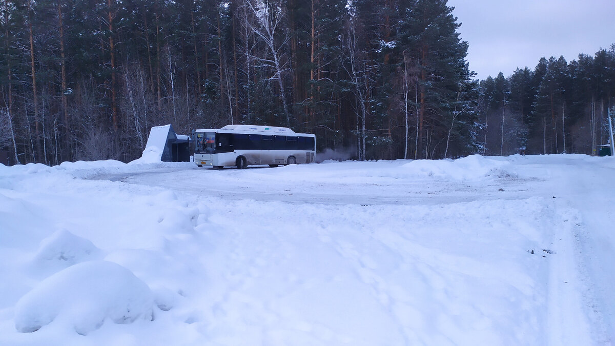 Сразу скажу, у меня не было возможности сделать хорошие снимки через грязноватое стекло автобуса. Поэтому, не удивляйтесь летним фотографиям, всё взято в интернете. Но она такая и есть. Только сверху сейчас название остановки написано.