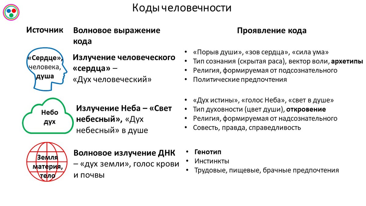 Из этого следует вывод: чтобы соединить людей в духе и истине, надо знать волновые коды человечности. Расскажем о них коротко.