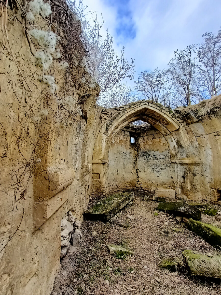 Об армянском монастыре Сурб-Хач писал здесь: История Крыма полна загадок и тайн, и чем дальше, тем таинственней. Об истории армян в Крыму известно много, но иногда натыкаешься на такое, что даже не знаешь: верить или нет! Но сейчас о вполне понятном объекте: Недалеко от Феодосии в селе Тополёвка, если съехать с дороги, то в глубине дворов, наткнёшься на остатки старого храма... Это Храм Сурб Саргис! Храм, о котором мало что известно, его строительство предположительно датируют XIV—XV веком, когда в Феодосии, которая тогда называлась Каффа, и в соседних городах проживало много выходцев из Армении. От храма остались стены... Храм однонефный около 50 квадратных метров с полукруглой алтарной частью (апсидой). Алтарь под стрельчатым куполом, а у подножия стоят хачкары - каменные стелы с резным изображением креста (слово хачкар образовано из армянских корней «хач» — «крест» и «кар» — «камень»), изображений крестов здесь много, даже кажется, что попал в настоящую Армению. Внутри Храм интерес
