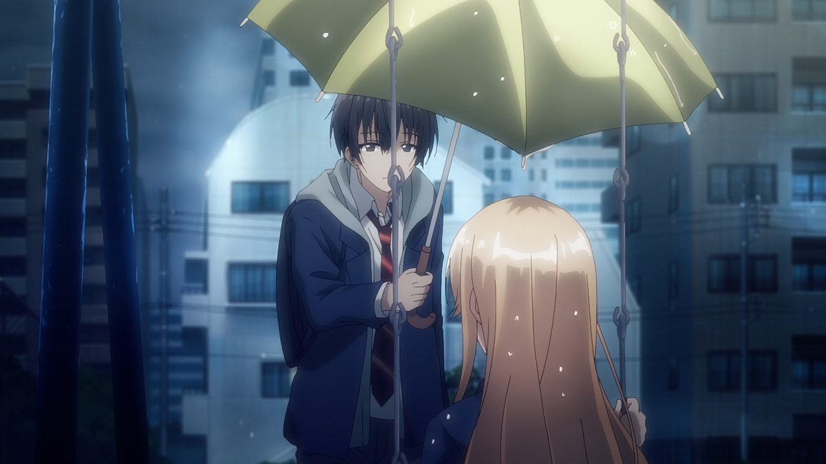 Начну с того, что это одно из самых правдоподобных аниме в этом жанре. Обычно в подобных историях совсем нет описания жизненной ситуации главных героев. Однако данное аниме по ходу своего сюжета рассказывает о том, что с родителями обоих школьников. Просто для меня это было неким эффектом ВАУ. Чаще всего я натыкался на то, что школьник живет один и не работает и про родителей за 12-24 серии 0 информации. Не знаю как вам, а мне подобные вещи всегда мешали поверить в реальность происходящего. Однако это аниме меня приятно удивило. Начнем с завязки. Все, как и всегда. Достаточно тихий парень(не жесткий хикан, у него есть друзья, все окей) и очень популярная, но при этом скромная девушка. Их первая встреча была на улице в дождливую погоду и в ней не было сильной романтики. Со стороны Махиры(главный герой) это был просто хороший поступок, не более того. Для Шины(главная героиня), я даже не знаю, как это было воспринято в моменте, но сердечки из глаз и розовый фон в моменте не пробежал хех.