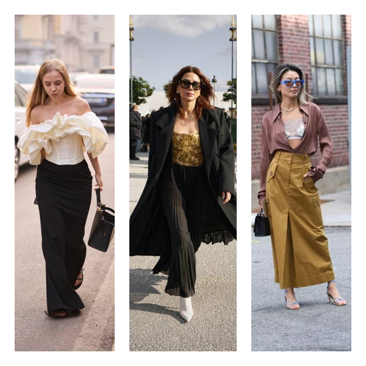 Британский журнал Vogue назвал 2023-й Годом макси-юбок. Большинство модных коллекций последних сезонов не обходилось без стильных макси из актуальных материалов - денима, шелка, трикотажа, кожи. Но на показах весна / лето 2023 дизайнеры, казалось, превзошли самих себя, представив изысканные фантазийные модели с богатым декором. Конечно, главный акцент был сделан на актуальные в этом сезоне юбки карго и модели, которые так или иначе отсылают нас к стилистике 2000-х годов. Итак, перед вами Топ-5 самых модных длинных юбок. Джинсовая макси-юбка Длинная юбка из денима сделает стильным практически любой образ. Дизайнеры и модные блогеры предлагают нам комбинировать её с жакетом, кожаной курткой, объемным трикотажем. Этой весной в моде double denim: юбка + куртка из джинсы. Макси-модели из последних коллекций масс-маркета По-прежнему самая актуальная модель джинсовой юбки - с разрезом спереди. Юбка карго Нравится нам это или нет, но в этом году вещи с карманами будут везде. Макси-юбки из де