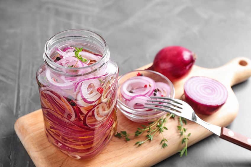 Рецепт маринованного лука для шашлыка: Ингредиенты: 2 крупных красных лука 1 стакан воды 1 стакан уксуса (на выбор можно использовать яблочный, винный или бальзамический уксус) 1 столовая ложка сахара 1 чайная ложка соли 5-6 гвоздик 5-6 горошков душистого перца 1 лавровый лист Инструкции: Нарежьте лук на тонкие полукольца и выложите их в стерильную стеклянную банку. В кастрюле смешайте воду, уксус, сахар и соль. Добавьте гвоздику, перец и лавровый лист. Доведите смесь до кипения и перемешайте, чтобы растворить сахар и соль. После того, как смесь закипит, снимите ее с огня и дайте остыть до комнатной температуры. Залейте охлажденную смесь луком в банке, плотно закройте крышкой и оставьте мариноваться в холодильнике на несколько часов или лучше на ночь. Перед подачей шашлыка достаньте маринованный лук из холодильника, выложите на тарелку и подайте к шашлыку. Приятного аппетита!