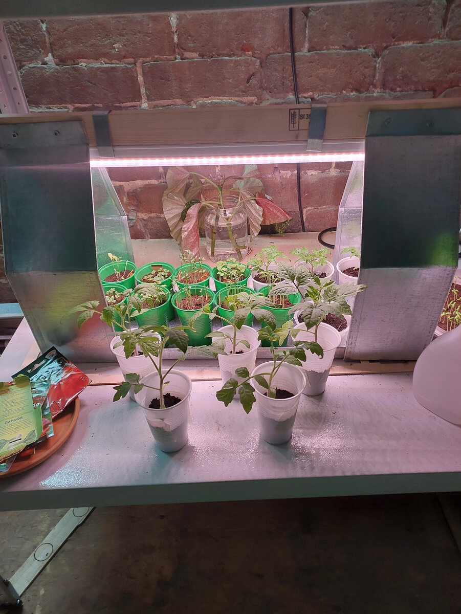 Рассаду я начал растить очень рано в этом году. И много, не на один балкон свой. В планах уже 3 балкона, одна стена, одна закрытая оранжерея, ну и всё что не влезет на участок)) Все родственники пенсионеры будут в итоге пристроены. Итак д/с Детским садом для рассады выступает микротепличка. Пока она произведена в единственном экземпляре, но вторая скоро будет, обещаю В одну и не влазят все желающие и новая конструкция придумалась, надо опробовать Начальная школа Она же в будущем и станет закрытой оранжереей. Окон нет, поэтому всё на лампах. Пока установил первые две. По рассчетам они будут потреблять на 200 рублей в месяц. А почем у вас помидорки черри нынче? Черри потому как в основном здесь балконное чудо будет, ориентировочно 5-6 кустов на сдвоенную лампу. Первые трудности Ребятишки у меня разрастаются, в маленьких стаканчиках им уже неуютно, но оказалось что литровые стаканы пластиковые в продвже нынче отсутствуют. Смотрел в Ленте, Монетке, Пятерочке, Ашане, нет нигде. Ну как сказ