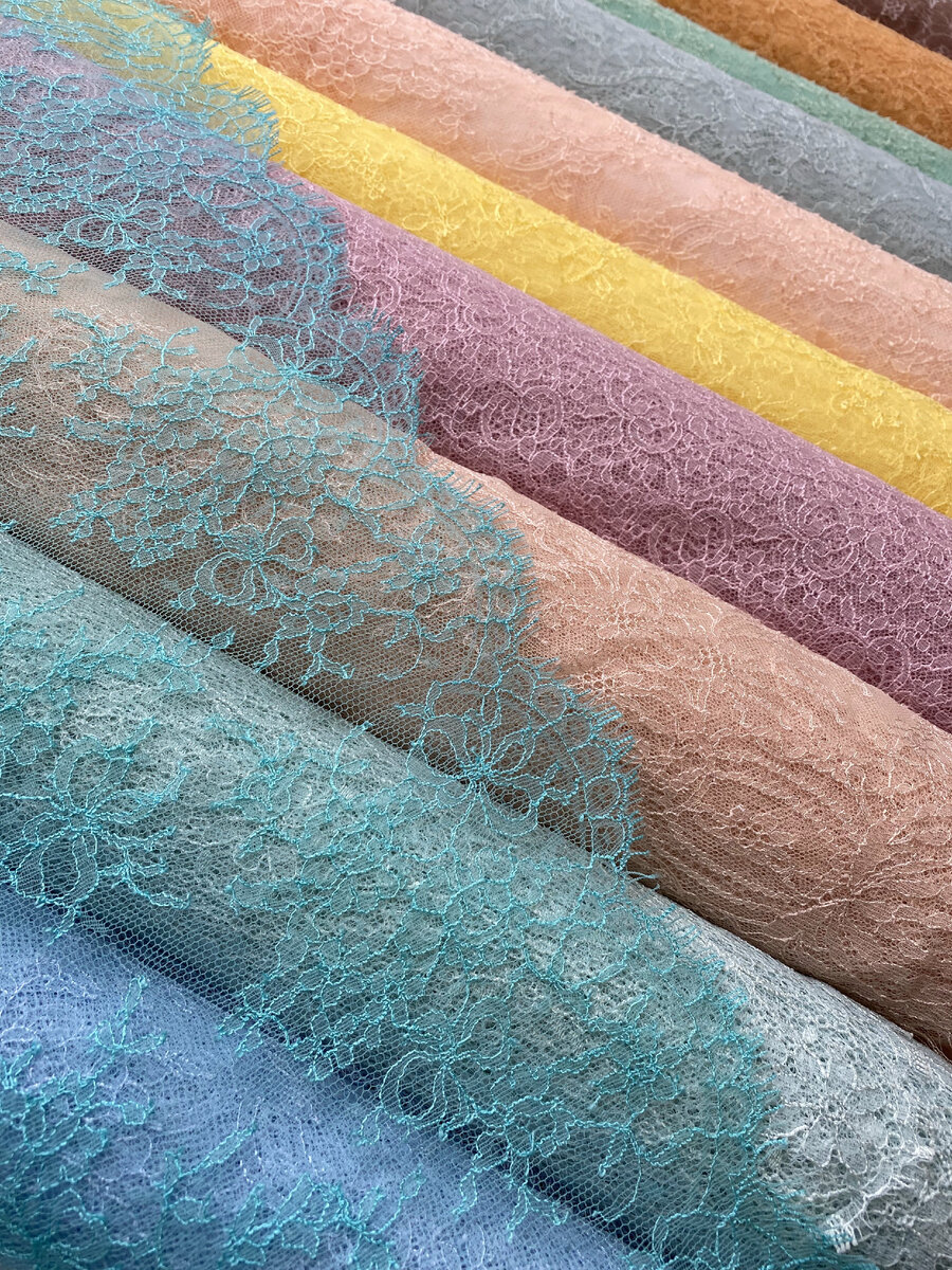 Фигурный край (фестон) представляет собой повторяющийся цветочный мотив, орнаментальную полосу с узором в форме листьев, цветов, зубцов и др. Кружево шантильи с цветочным узором темно-синего цвета от Riechers Marescot (Франция) Немного истории: