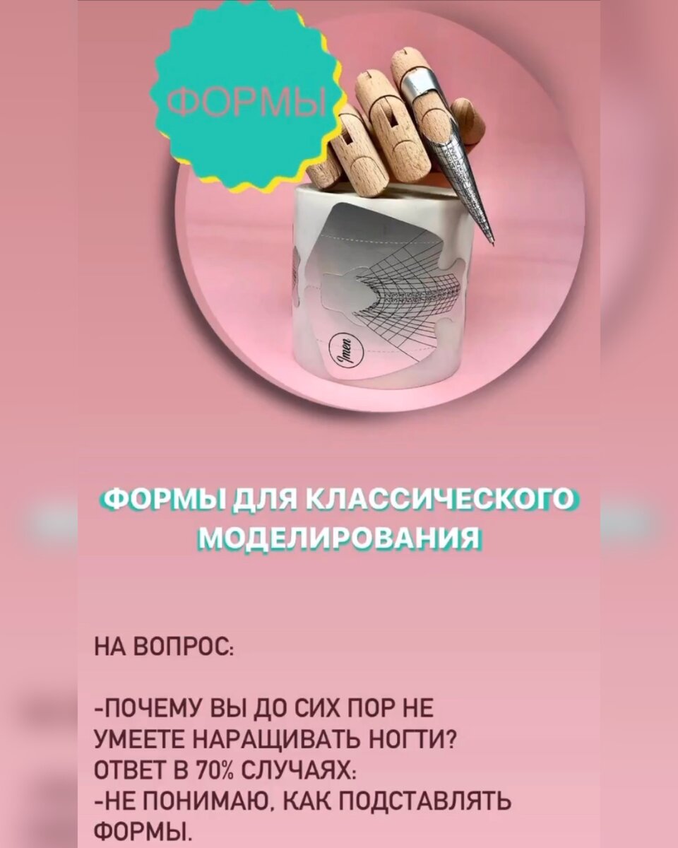 Формы для классического моделирования На вопрос: -Почему вы до сих пор не умеете наращивать ногти? ответ в 70% случаях: -Не понимаю как подставлять формы. На самом деле, этап подстановки форм- это фундамент будущих ногтей. Сможете их подставить с первого раза? - Возможно, но это будет, скорее, случайность. Опыт- вот что имеет значение. Согласитесь, получать опыт на качественных материалах, куда приятнее и быстрее. Подставляя некачественную форму, ваш фокус внимания смещается не в сторону моделирования, а устранения проблем с формами: то она порвалась, то расклеилась, то настолько мягкая, что не держит форму. И начинаются "танцы с бубнами" совсем не там где нужно. Плюс вы теряете время. А теперь возьмите и попробуйте поработать нашими формами на алюминиевой основе. Это же совсем другое дело! Формы для моделирования ногтей изготовлены из тонкого алюминия: •удобные в постановке •держат арку •не расклеиваются в лампе •понятная разметка •с их помощью получатся отл