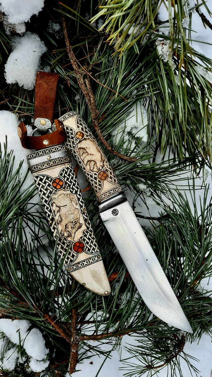 Окончил гравировку ножен. Хотя вторая сторона тоже просится быть украшенной