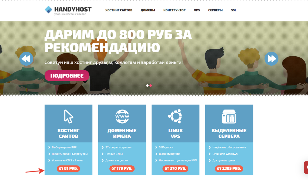 К счастью, handyhost.ru согласился предложить нашим пользователям бесплатное доменное имя и скидку на годовой веб-хостинг.