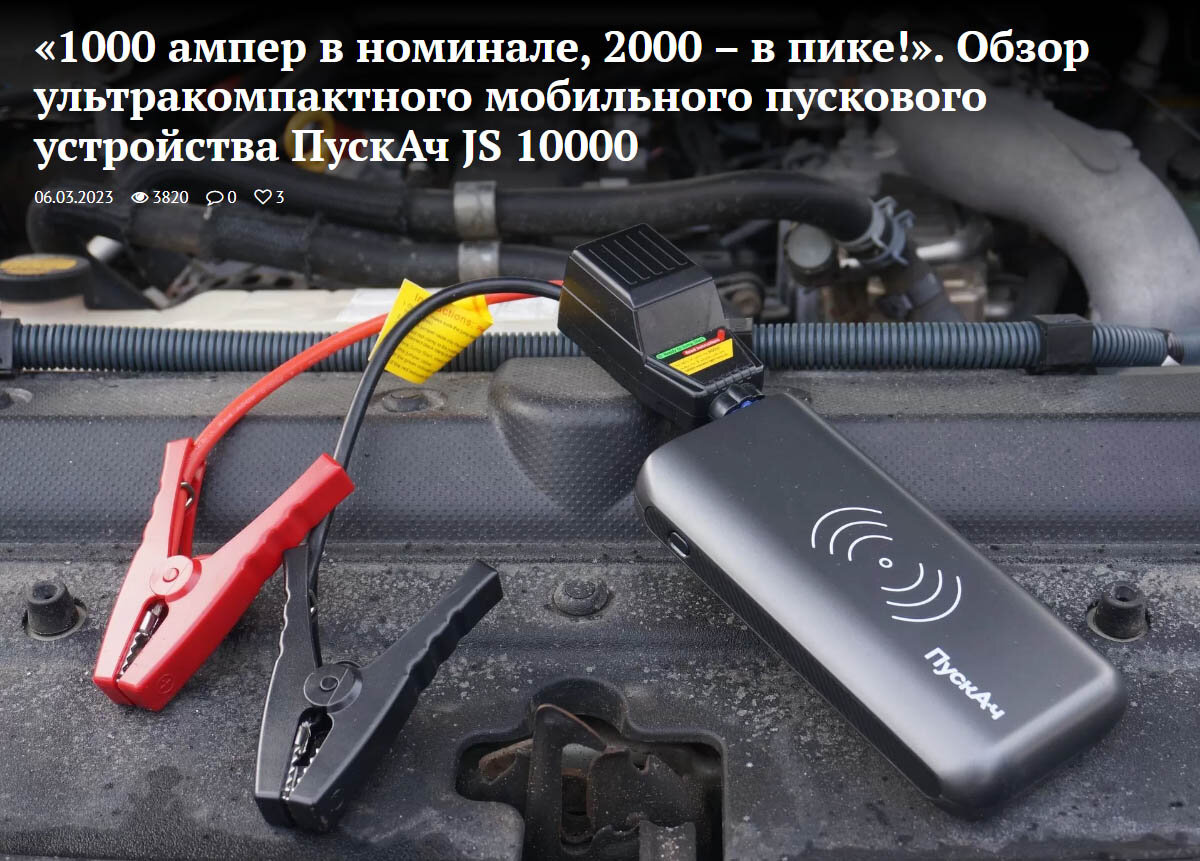 В журнале КОЛЕСА.ру вышел большой тест-обзор на ПускАч JS 10000.