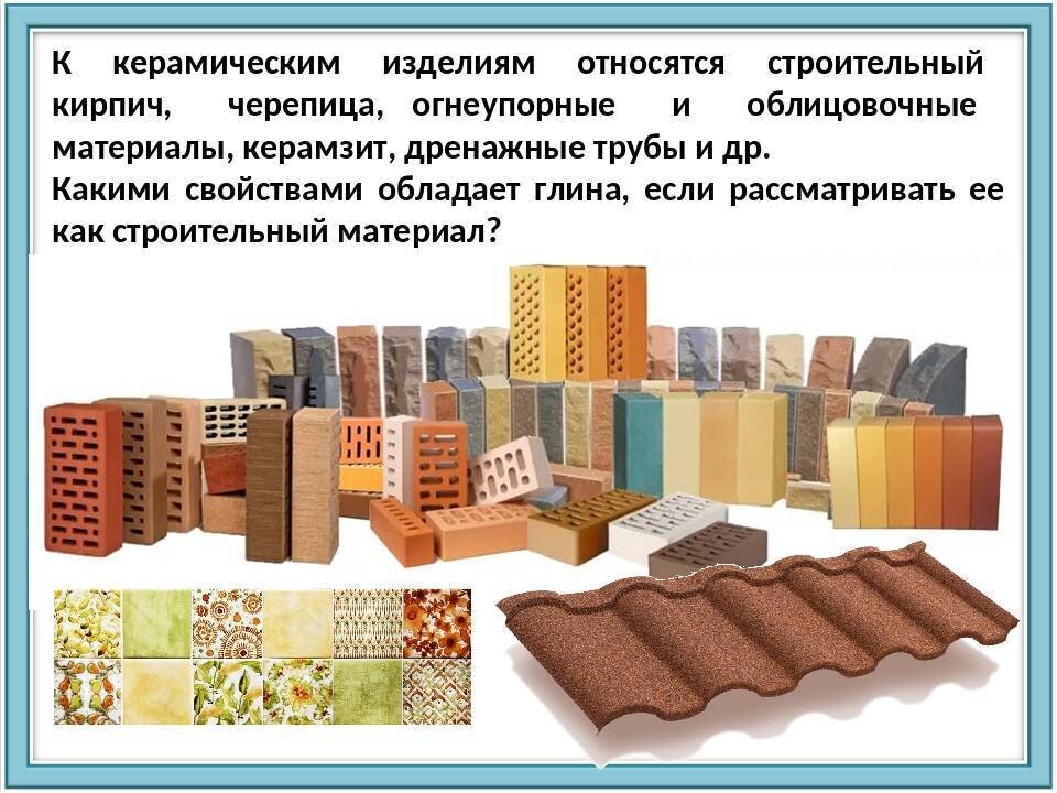 К строительной керамике принято относить широкий ассортимент различных материалов и изделий, с разнообразными свойствами и назначением, которые применяют при возведении промышленных, жилых и общественных зданий. В настоящее время строительную керамику используют во многих конструктивных элементах зданий и сооружений, а материалы для наружной и внутренней облицовки активно применяют при строительстве быстровозводимых конструкций. Под термином керамика традиционно принято понимать любые изделия из обожженной глины. Тот материал, из которого, собственно, и состоит готовое керамическое изделие, в технологии керамики называют черепком или керамическим черепком. Черепок является искусственным камнем, который образуется в процессе обжига изделия из-за спекания компонентов керамики при высокой температуре. Существует множество видов классификации строительной керамики: по составу керамической массы, по назначению, по структуре черепка после обжига и т.д. По структуре черепка керамические изд