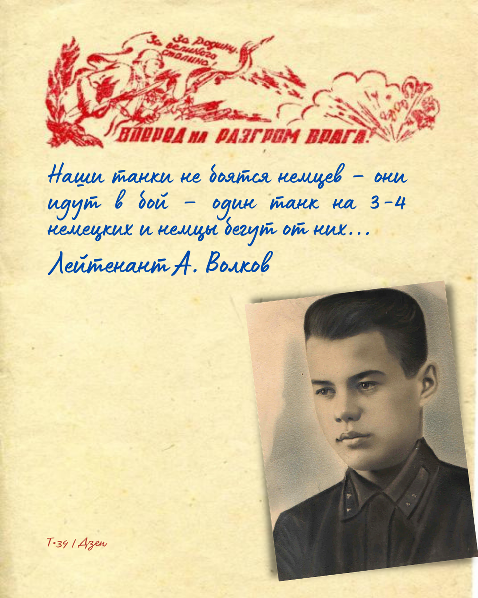 - Друзья! Вашему вниманию предлагается рассказ подписчика Дмитрия Волкова о своем дяде — Волкове Антолии Михайловиче, командире танковой роты легендарных «тридцатьчетверок», принимавшем участие в боях за Витебск в сорок первом и Харьков в сорок втором, участвовавшем в битвах за Москву и Сталинград, а также в знаменитом танковом сражении на Курской дуге. Рассказ будет состоять из нескольких частей. Сегодня — часть первая