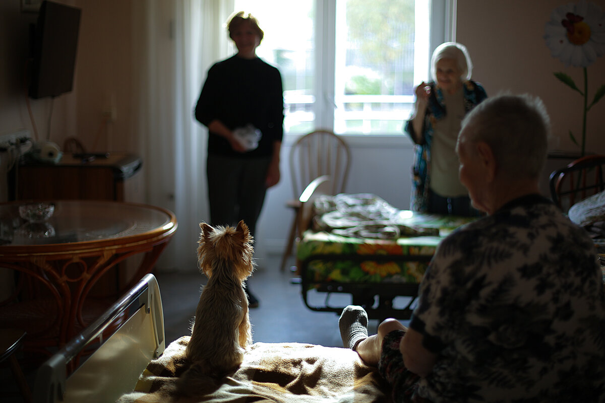 Венечка — это пес породы ши-тцу. Венечку все знают и любят. Медперсонал хосписа встречает его еще при входе, и тут же собака-волонтер оказывается в центре внимания: все ее гладят, тискают и целуют. Венечка неустанно машет хвостом и тычется мокрым носом в халаты медсестер, а Аня, хозяйка волонтера, стоит в стороне, но совсем не грустит из-за этого.