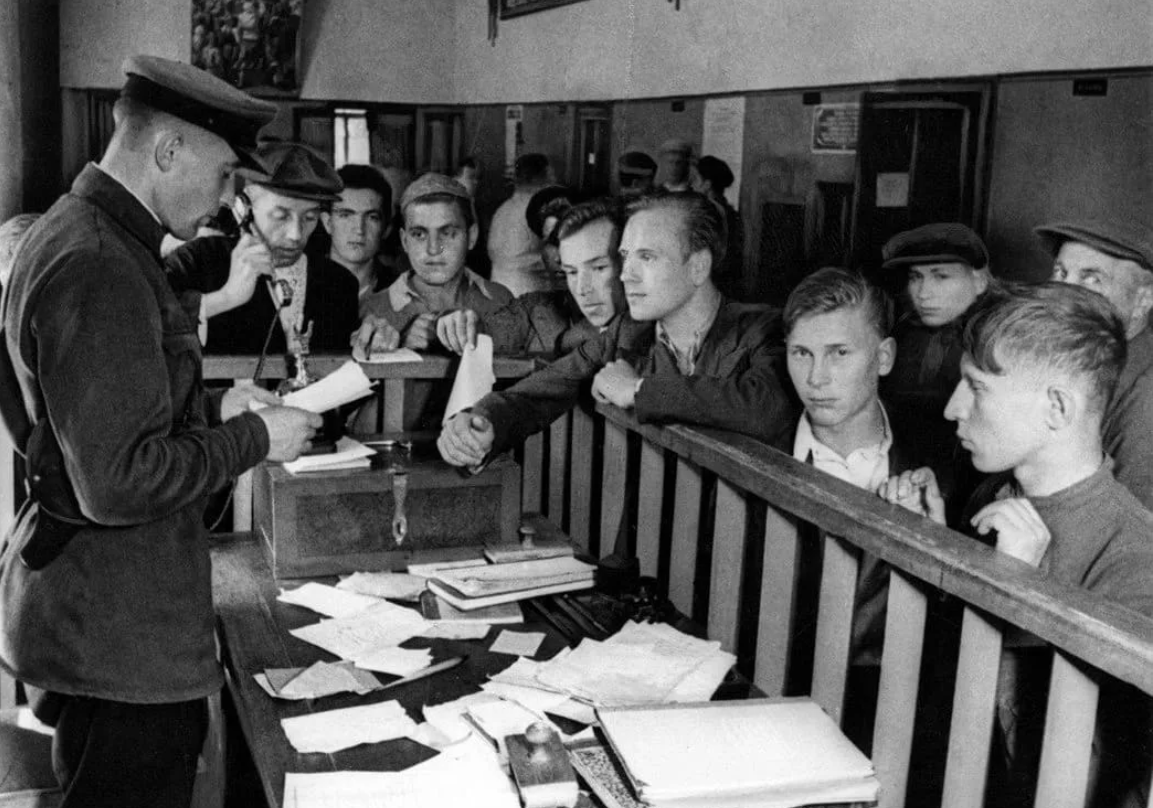 С началом Великой Отечественной войны тысячи мужчин и даже женщин отправились в военкоматы. Н. Малышева вспоминает, сразу после объявления о начале войны студенты авиационного института отправились в военные академии с просьбой перевести их на обучение туда, а затем и на фронт. Это удалось лишь одному из друзей Натальи, потому что его отец – командир Красной Армии. Малышева все-таки смогла попасть в разведку. Уже на следующий день военкоматы начинают выдавать повестки военнообязанным с 1905 по 1818 год рождения. За месяц в рамках полной мобилизации мужчин и частичной – женщин были укомплектованы новые части Красной Армии. Закон запрещал призывать детей бывших купцов, кулаков, фабрикантов, но в 1939 году он престал распространяться на них, а на казаков еще в 1935 году. Лишь за 8 месяцев в рамках мобилизационных мероприятий удалось призвать более 5 миллионов 300 тысяч новых солдат. По количеству это сопоставимо с еще одной Красной Армией. Однако, не все граждане были готовы отправиться