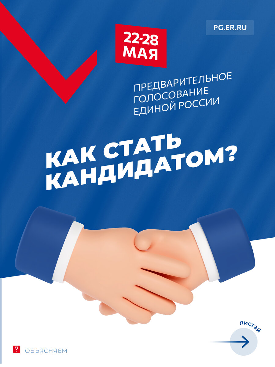 ✅ Началась регистрация кандидатов на предварительное голосование «Единой России». Оно пройдет в электронном формате с 22 по 28 мая.